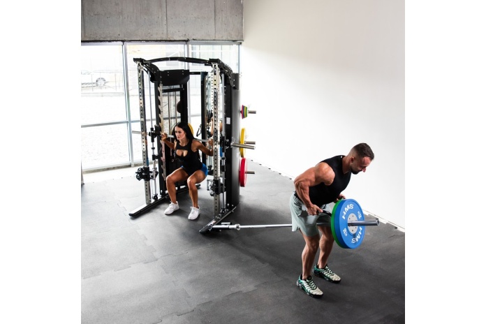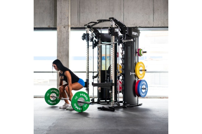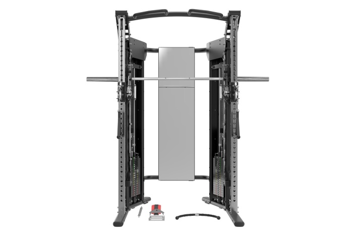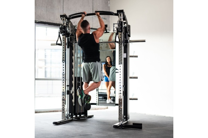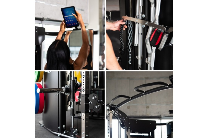 Pełna funkcjonalność – suwnica Smitha, power rack, brama z wyciągami oraz regulowane wyciągi linkowe pozwalają trenować całe ciało: nogi, plecy, klatkę, barki, ramiona i core.