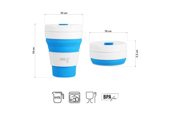 • KUBEK SILIKONOWY SKŁADANY 475ML NIEBIESKI NC4103 /NILS CAMP