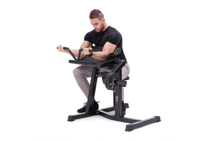 Zarówno podłokietniki, jak i siedzisko są tapicerowane, aby zapewnić komfort podczas treningu. Co więcej, siedzisko można łatwo regulować, aby uzyskać idealną pozycję do ćwiczeń.