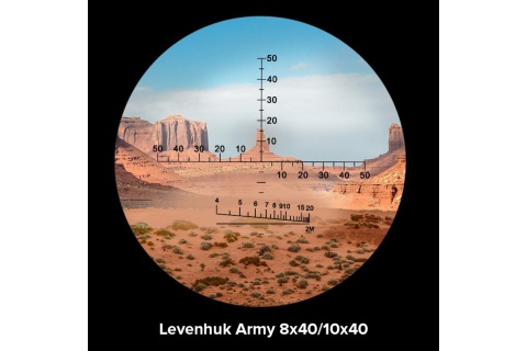 Przedstawiamy Levenhuk Army 10x40 - lornetkę polową z podziałkami, która doskonale sprawdza się podczas polowań, turystyki ekstremalnej, w celach taktycznych i związanych z zabezpieczeniem oraz przy pomiarach gruntów.