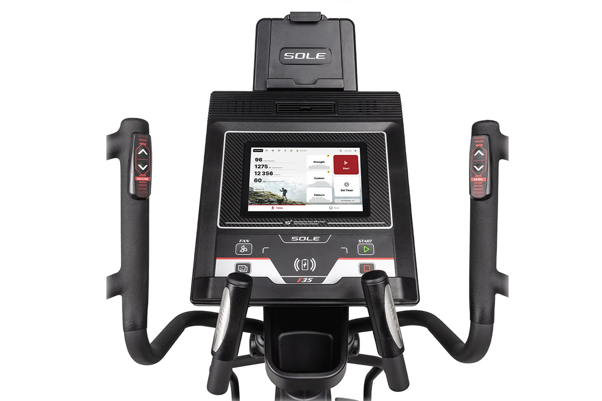 Orbitrek SOLE E35 wyposażono w elektroniczną regulację kąta nachylenia rampy w zakresie 0–20%, z dokładnością co 1%. Zmiana poziomu nachylenia pozwala skoncentrować trening na różnych grupach mięśni dolnej części ciała. Sterowanie odbywa się bezpośrednio z ruchomych rączek, co znacząco podnosi komfort i pozwala skupić się wyłącznie na treningu.