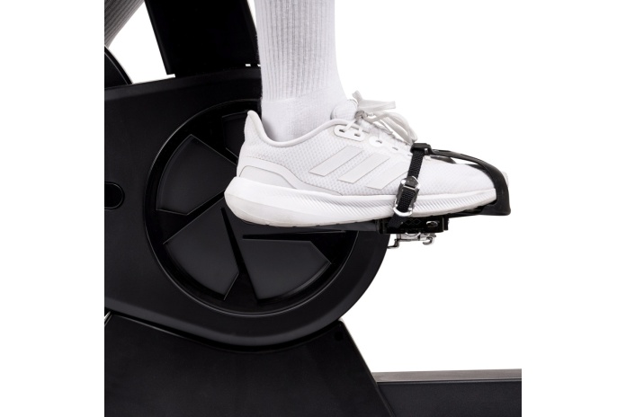 Dwustronne pedały wyposażone w system SPD oraz klasyczne koszyki umożliwiają korzystanie zarówno z butów kolarskich, jak i sportowych. To zwiększa elastyczność użytkowania i pozwala na płynne przechodzenie między różnymi typami treningu.