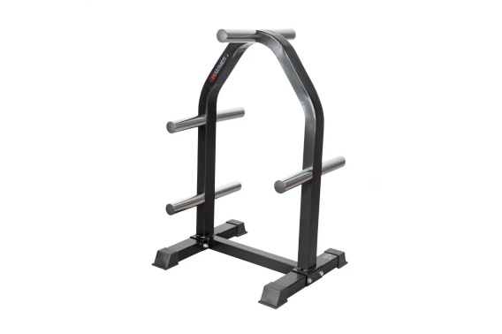 Stojak oferuje 8 uchwytów na talerze, każdy o długości 19,5 cm i maksymalnym udźwigu do 100 kg. Umożliwia to wygodne przechowywanie całej kolekcji obciążeń olimpijskich w jednym miejscu, zachowując porządek i łatwy dostęp podczas treningu.