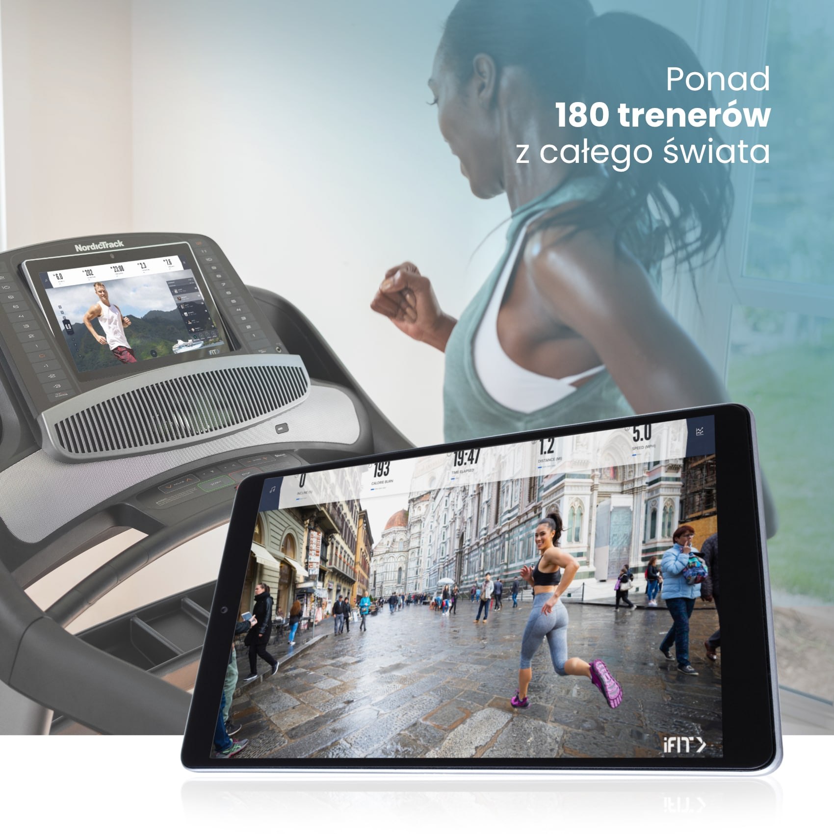 iFit to obecnie najprężniej rozwijająca się platforma fitness na świecie. Na dzień dzisiejszy treningi prowadzi ponad 200 certyfikowanych trenerów z całego świata, a biblioteka ma blisko 11 tysięcy filmów nagranych w jakości HD. Regulacja prędkości sprzętu czy nachylenie dostosowywane jest automatycznie w zależności od wybranej trasy.