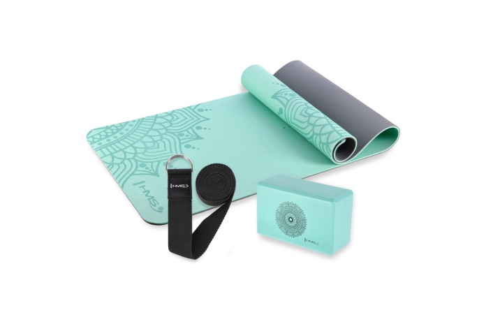 Zestaw do jogi HMS Mint - mata TPE YM10 + kostka KJ02 + pasek SJ02